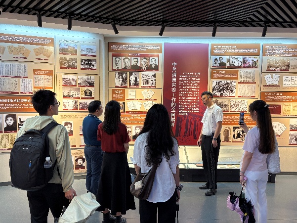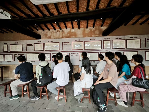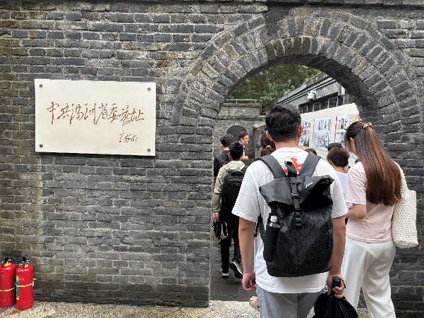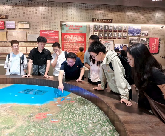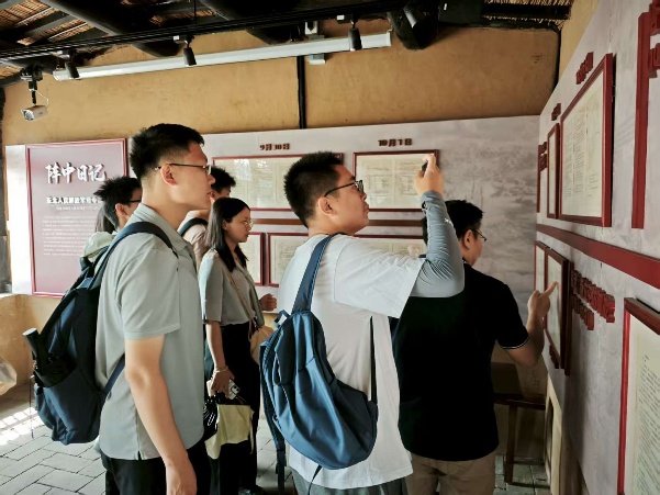 走进院内,师生党员们参观了复原的指挥室场景,观看室内陈列的战略地图、发报机及批示电文复刻件。旧址管理人员详细介绍了当年的战争环境,将领们以炕桌为案、草席作床,让大家深刻感受到在物质匮乏年代里共产党员所淬炼出的钢铁意志。这座“小村庄里的指挥中枢”,用土炕上的电文与院落里的硝烟记忆,铸就了“平凡之地扭转乾坤”的战争奇迹。全体成员在历史实景中体悟到“小米铁血,陋室决胜”的坚定信念与斗争智慧,完成了一堂震撼心灵的红色思政课。