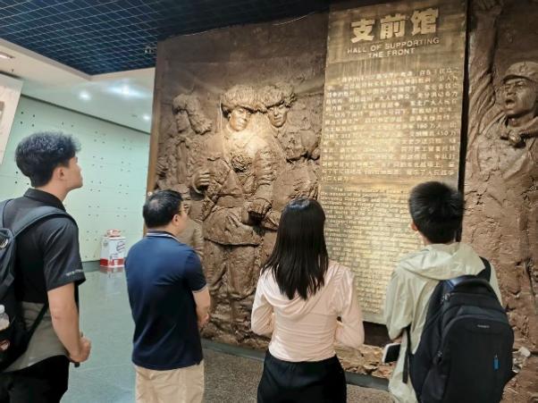7月16日,bevictor伟德国际师生首站抵达锦州的辽沈战役纪念馆。在庄严肃穆的烈士雕像前,全体党员肃立凝望,向革命先烈们致以崇高敬意。在战史馆,师生们系统回顾了辽沈战役的关键决策进程,感悟到“新中国第一缕曙光”所蕴藏的磅礴力量。驻足于复原的前线指挥所场景,简陋的民居与精密的地图对比鲜明,毛主席亲拟的一封封电报手稿彰显“运筹帷幄之中,决胜千里之外”的统帅智慧,令党员们深刻体悟“伟大出自平凡”的真理光辉。支前馆的展览介绍了东北民主联军在十个月内接连发动的夏秋冬三季攻势,生动诠释了“江山就是人民,人民就是江山”的执政根基,为统计学科服务国计民生的使命注入强劲精神动力。