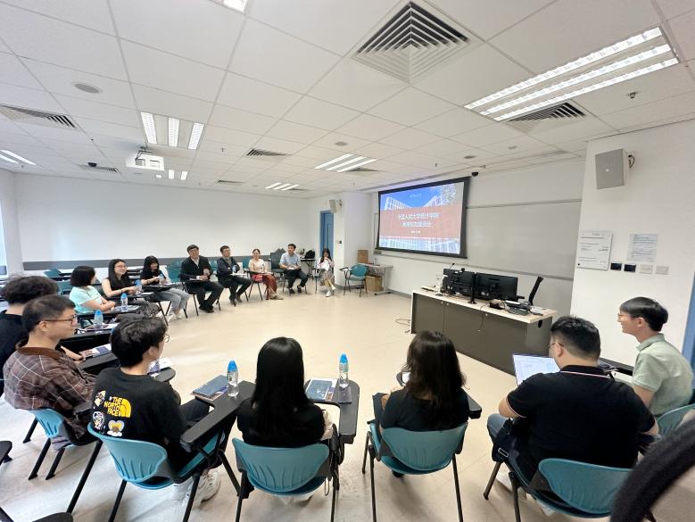 代表团一行访问了香港中文大学统计学系,与统计学系系主任王军辉及宋心远、樊晓丹、林志翔、戴奔、黄建华等相关人员进行座谈。双方不仅交流了各自在教学、科研、国际合作等方面的丰硕成果,还就研究生联合培养、师生互访、科研合作等多个领域的合作意向进行展望规划,旨在促进人才联动培养、加强团队交流、推动科研项目协同共进。