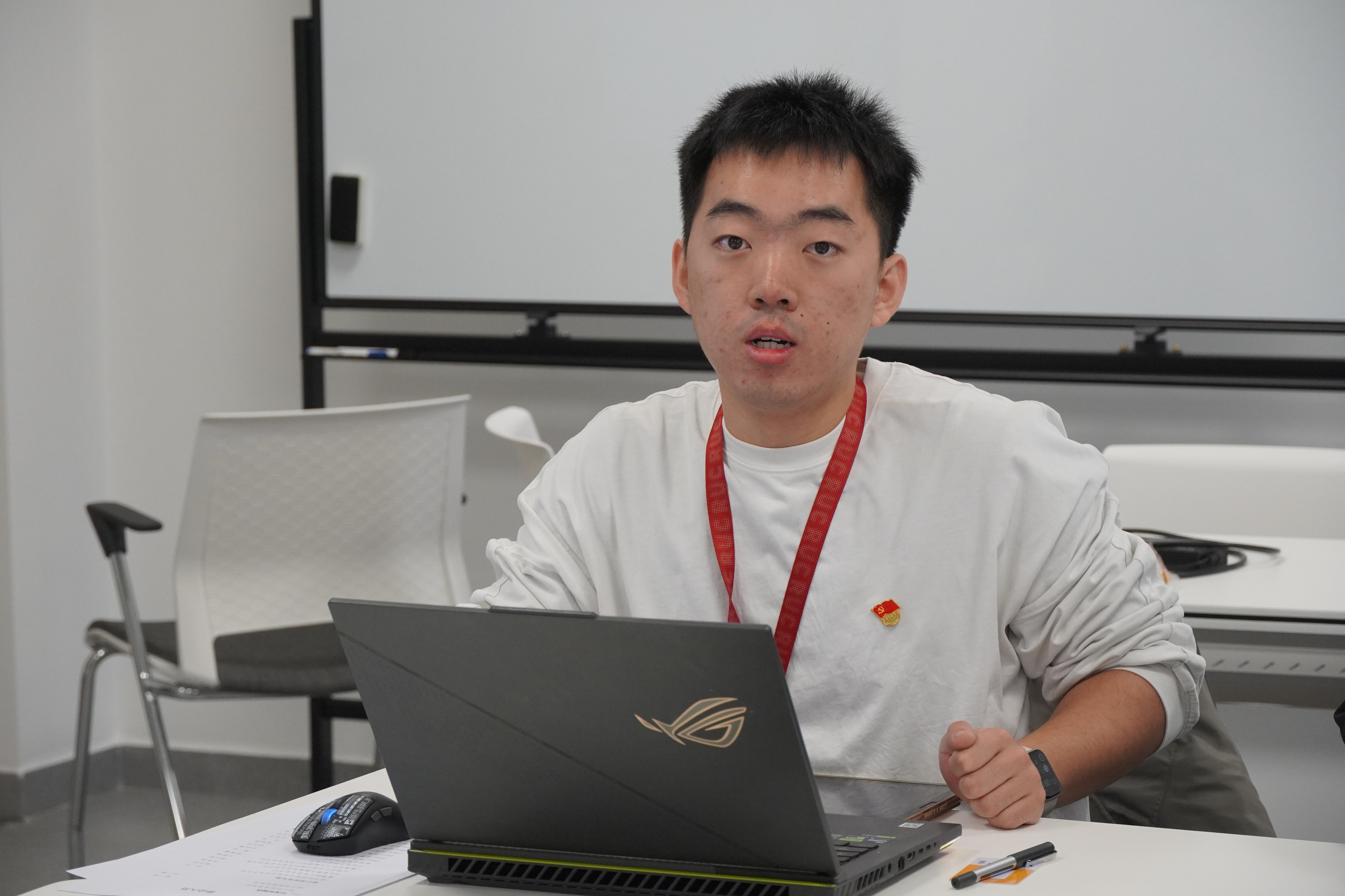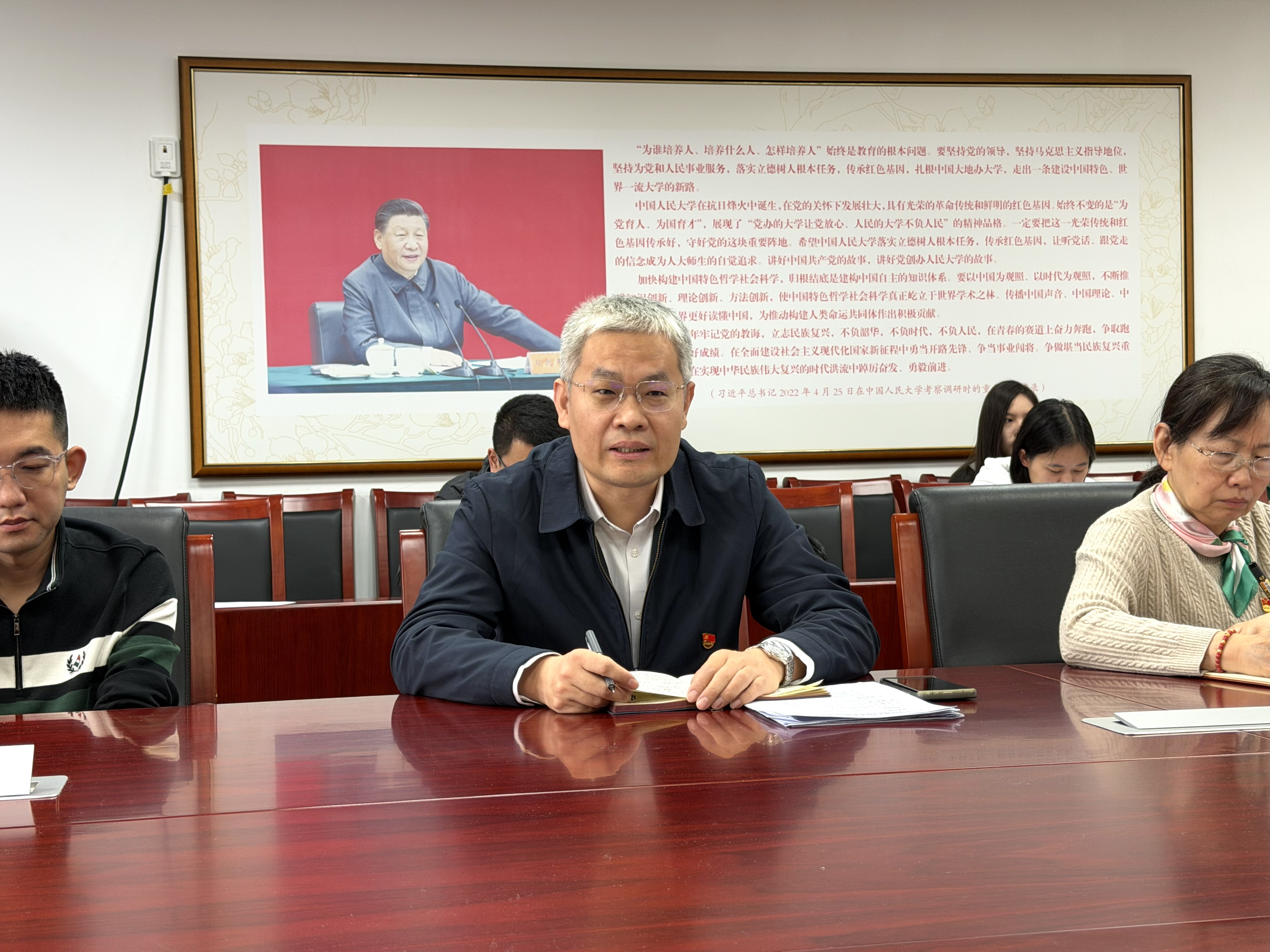 经济社会统计系党支部党员李杰围绕“双创”样板支部申报工作分享经验。他从利用专业方法解读中央重大决策部署背后的理论逻辑、让党建知识服务于国家发展改革实践、常态化开展跨支部联合学习等方面进行了具体深入的交流分享。李杰提出,支部建设要紧扣专业特色,将党建工作与学科优势深度结合,让理论学习“活起来”、让专业优势“实起来”。