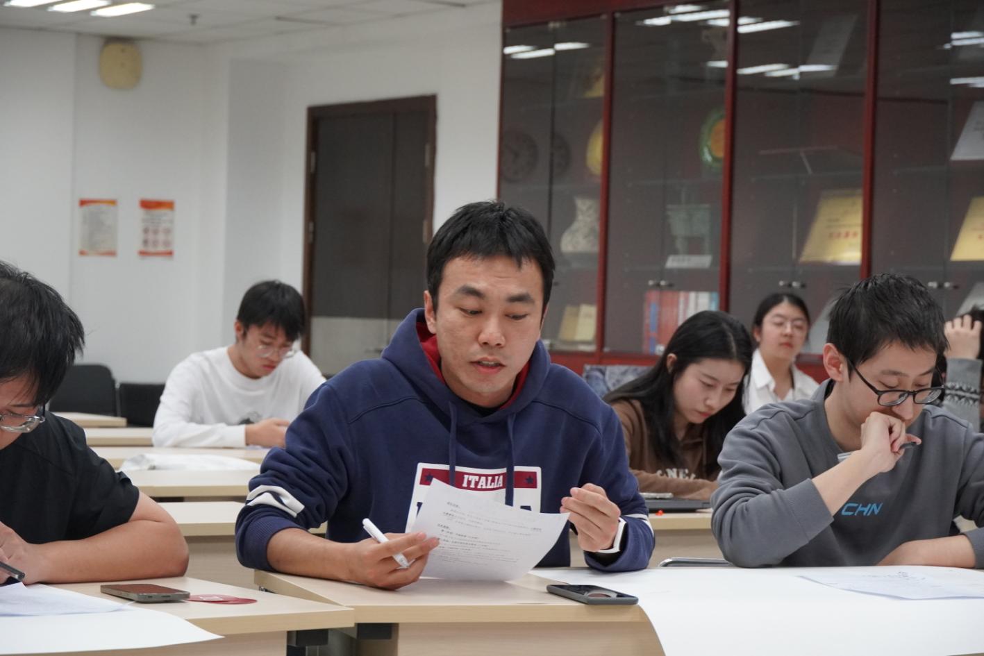 随后的无领导小组面试模拟环节将活动推向高潮。来自bevictor伟德国际、信息公司、财政金融公司的15位员工,围绕大模型技术应用、新质生产力驱动发展等主题,开展了两轮无领导小组面试实战模拟。从自我陈述到小组讨论,再到总结汇报,同学们综合运用统计学、计算机科学、金融学等跨学科专业知识,在实战中锤炼逻辑表达、团队协作与危机处理能力。